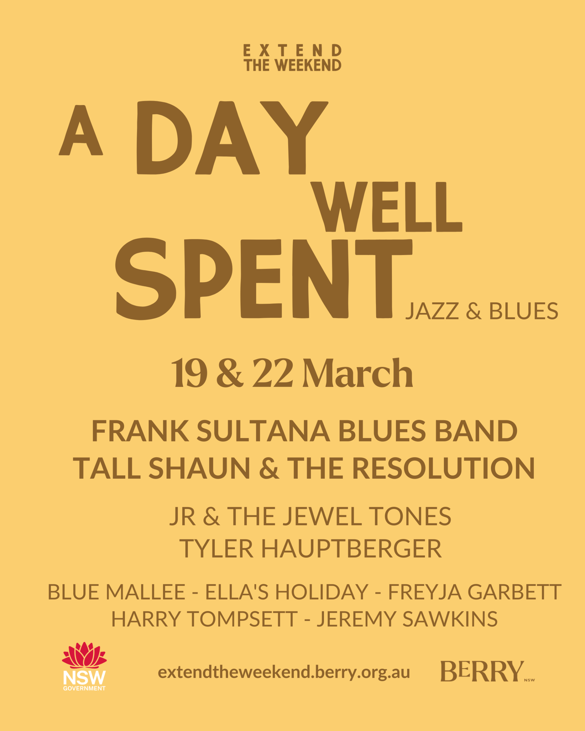 A Day Well Spent – Jazz & Blues brings a lively program of jazz and blues to venues across Berry on Thursday 19 and Sunday 22 March, with artists including Frank Sultana, Tall Shaun & The Resolution and more
