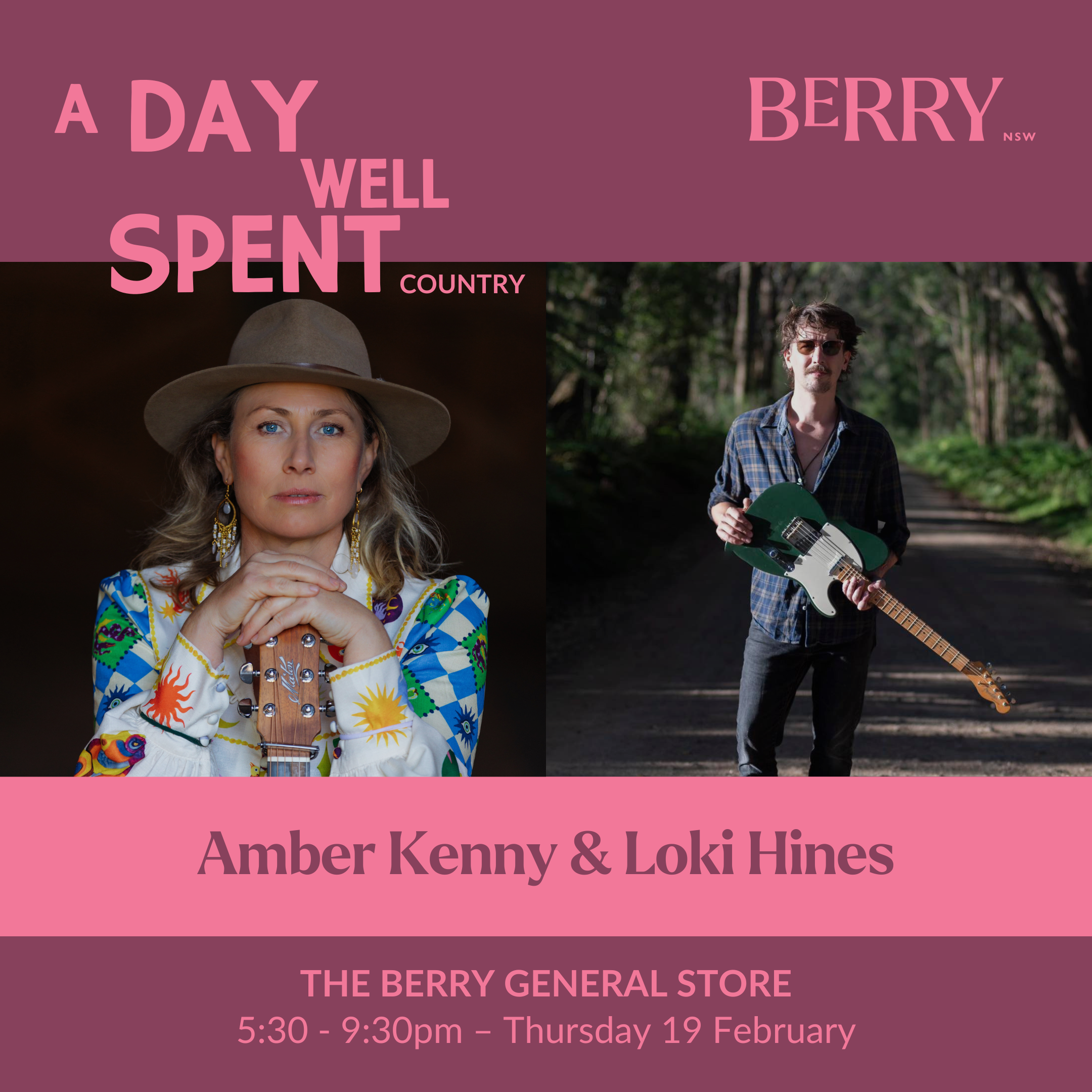 This double-bill line up at The Berry General Store marks the official launch of A Day Well Spent, the live-music core of the Extend the Weekend campaign, and the beginning off the Country weekend – a proper South Coast hoedown: classic, contemporary and alt-country served up across Berry’s Queen St precinct. Expect two intimate sets from Amber Kenny and Loki Hines, a special dinner offering, and the kind of country storytelling that makes Berry’s venues feel like home.