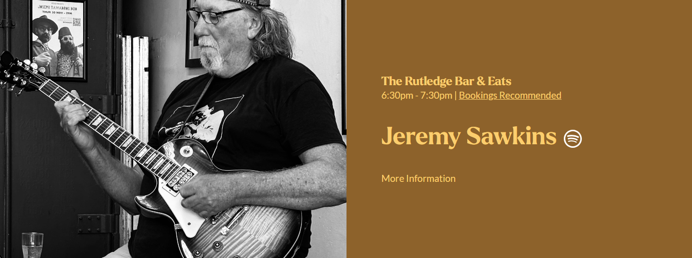 Saturday nights at The Rutledge. Liam Maihi performs live 6pm - 9pm, Saturday 21 March 2026 Liam Maihi live, cocktails flowing, dinner worth lingering over. Bookings recommended.